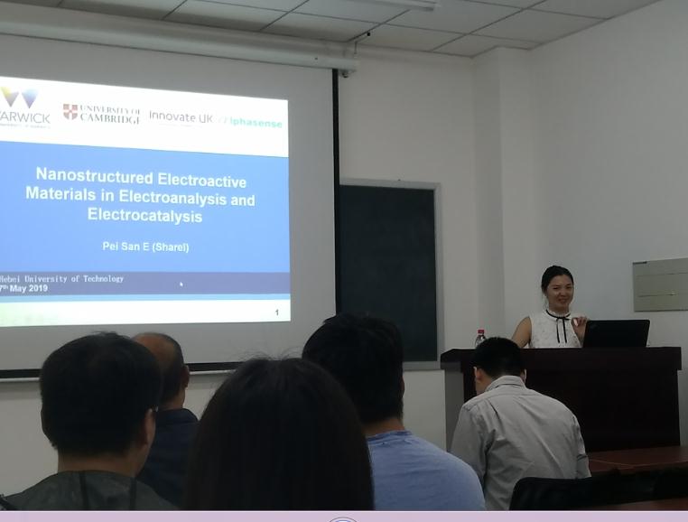 2019年5月7日上午9:30,应kaiyun体育官网登录入口材料科学与工程学院的邀请,英国华威大学Pei San E博士和英国南安普顿大学孟令聪博士来我院做学术报告,报告题目分别为“Nanostructured Electroactive Materials in Electrocatalysis and Electroanalysis”和“Electrodeposition of Functional Eanomaterials”。报告会由我院副院长郑士建教授主持,来自各个学院的师生50余人一起聆听了两位博士的报告。
