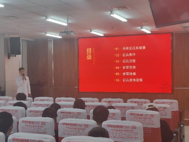 接着,董宇博详细解释了学生们普遍关心的问题,包括大学生应征入伍后的个人发展、经济优抚政策,以及退役后的升学和就业优抚政策,帮助同学们更全面地了解应征入伍的条件和相关政策。