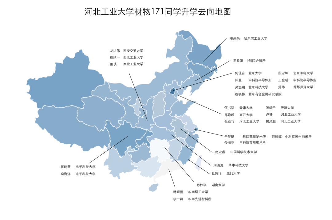 在这个春意盎然的四月,材料科学与工程学院材物171班共33人,30名同学考研成功上岸,升学率高达91%。其中15人考入北京大学、天津大学、南开大学、哈尔滨工业大学、西安交通大学等双一流高校,14人考入双一流学科建设高校。材物学子,未来可期。