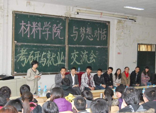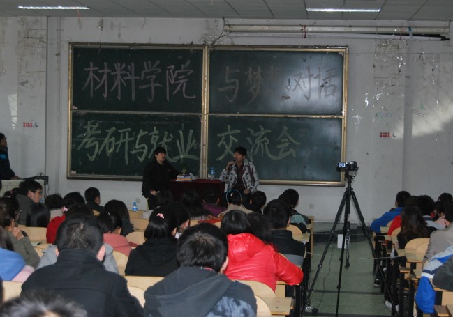 伴着清晨淡淡的微风,初生的太阳照耀着大地, 3月25日上午九点,材料学院“与梦想对话——考研与就业交流会”在东院7D102举行。各届材料学子齐聚一堂,就考研与就业各抒己见。
