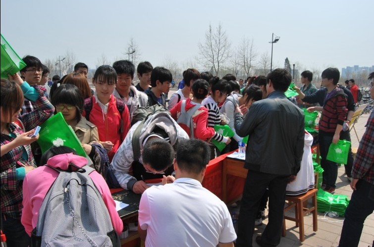 12点的时候恰逢下课高峰,大批的同学向在活动的现场咨询和签名。到了下午1点钟,活动接近尾声,就在工作人员与贾老师合影留念时,还有陆续有同学前来表达爱心。