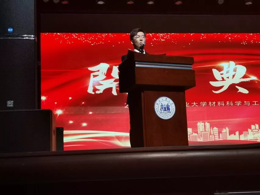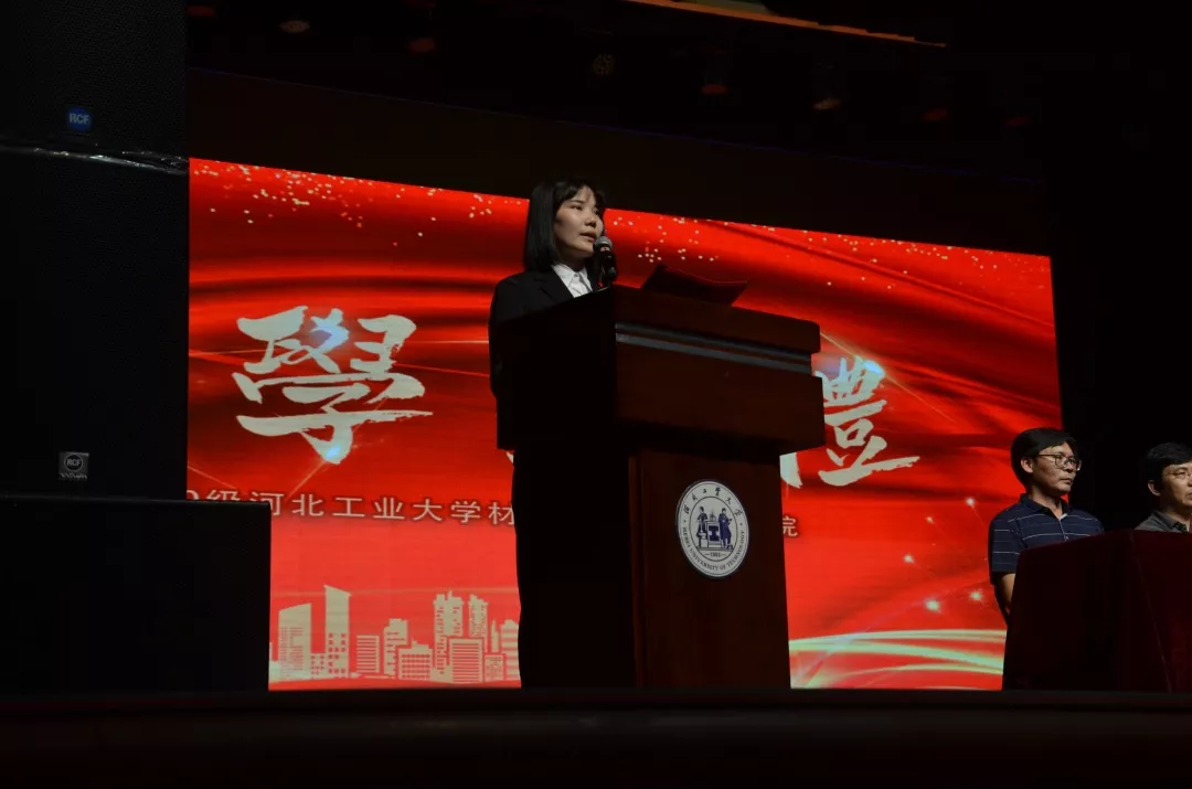 教师代表杨勇代表所有教职工人员对材料学院新生表示热烈欢迎,他教导我们:要确立新的目标,树立正确的专业思想,勇敢面对大学生活中的困难。