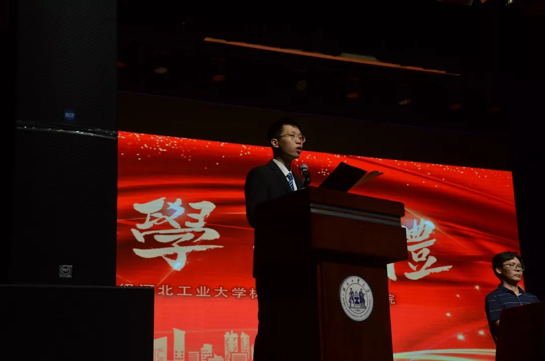 研究生新生代表杨靖文回忆自己备考路上的艰辛,作为河工人的她深感自豪,她鼓励我们继承和发扬河工精神,胸怀抱负,充满豪情。