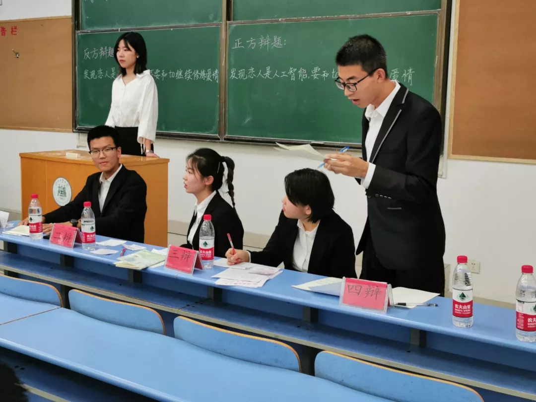 双方辩手以“发现恋人是人工智能,要不要和TA继续修炼爱情”为辩题展开了一场激烈的唇枪舌战,引得观众阵阵掌声。