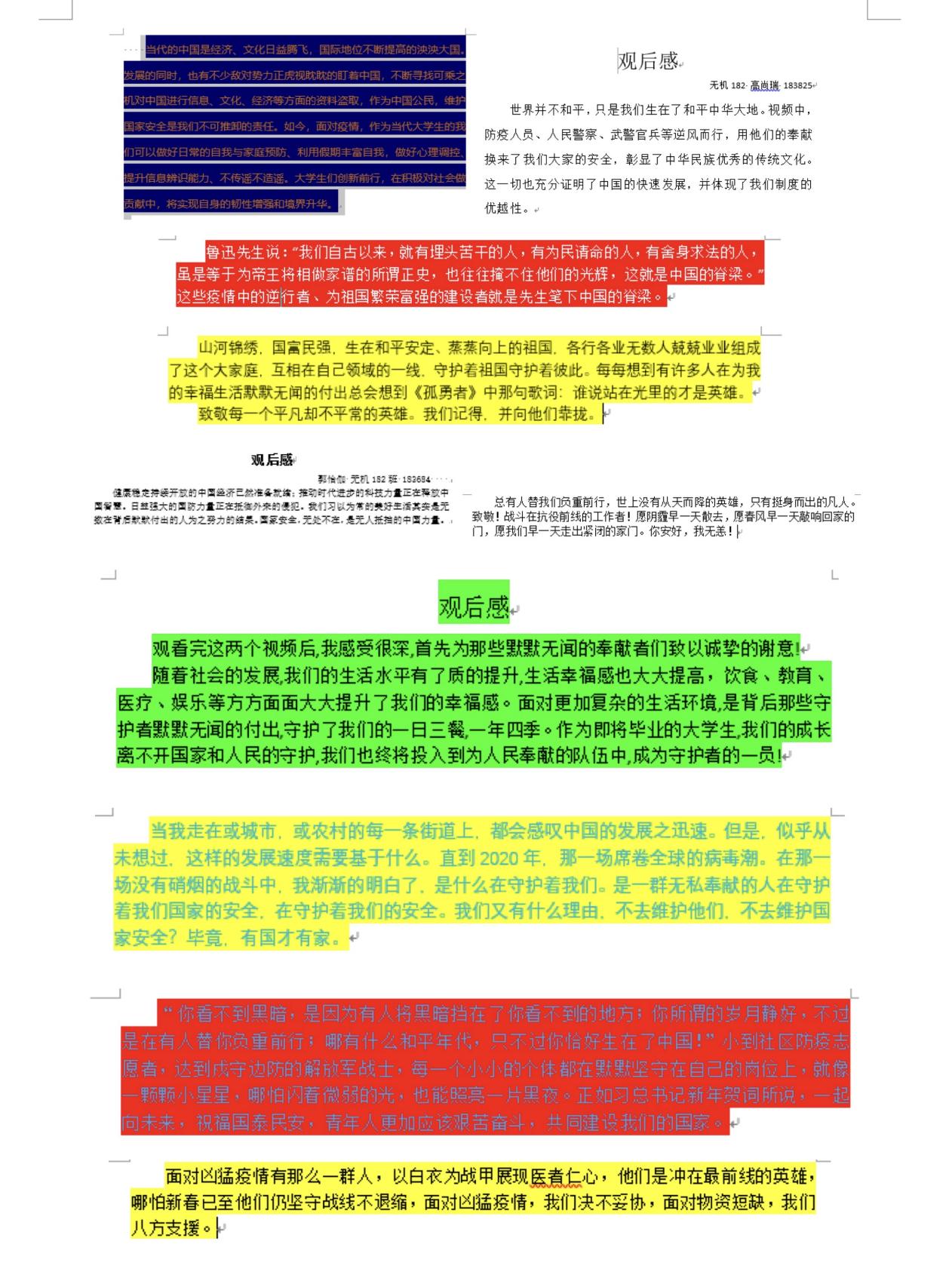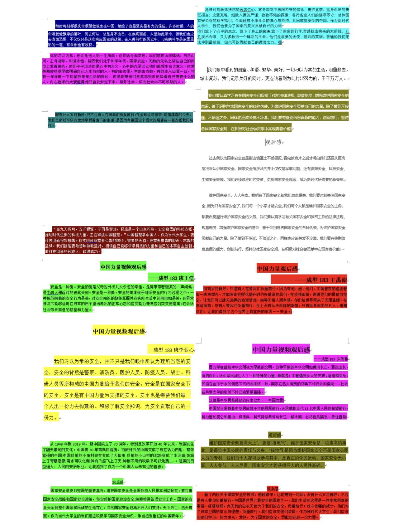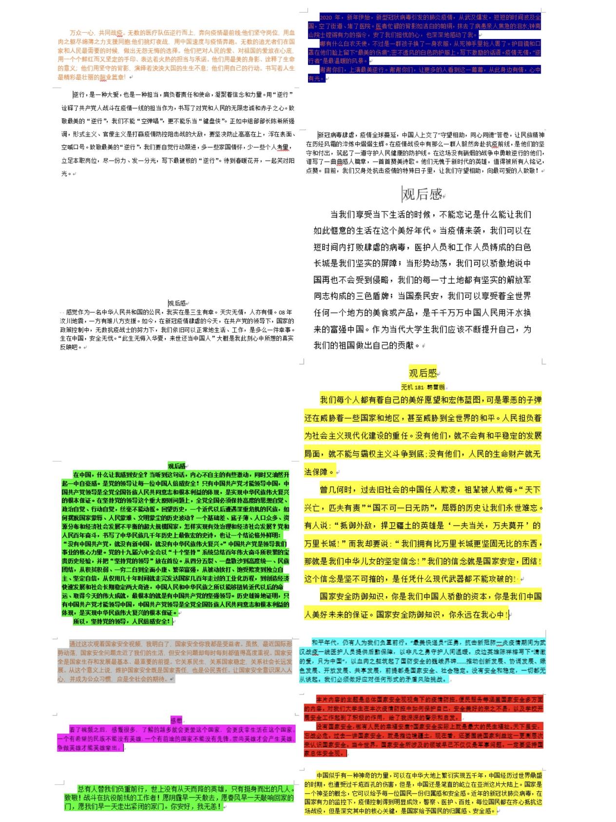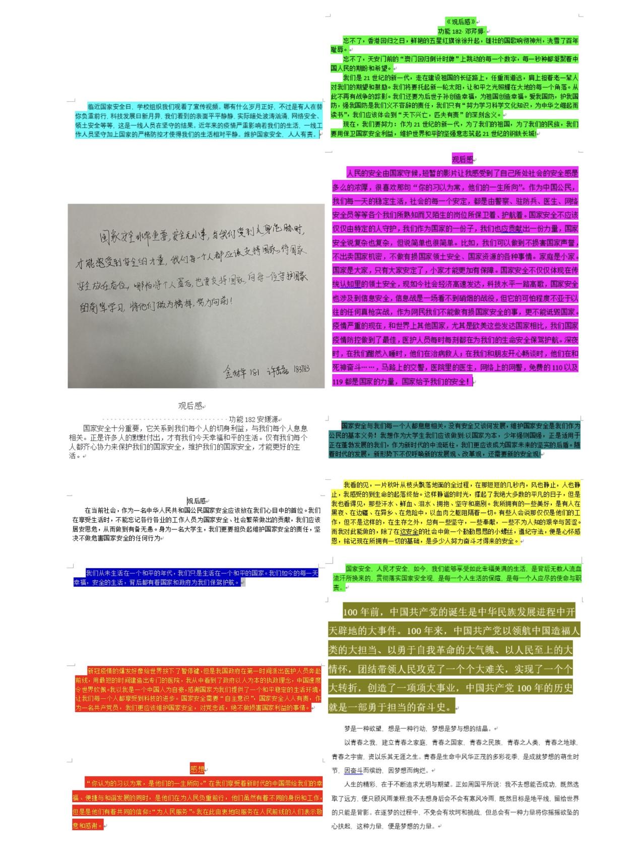 同时各班级代表也积极参加国家安全宣传教育活动,并写下活动感想。