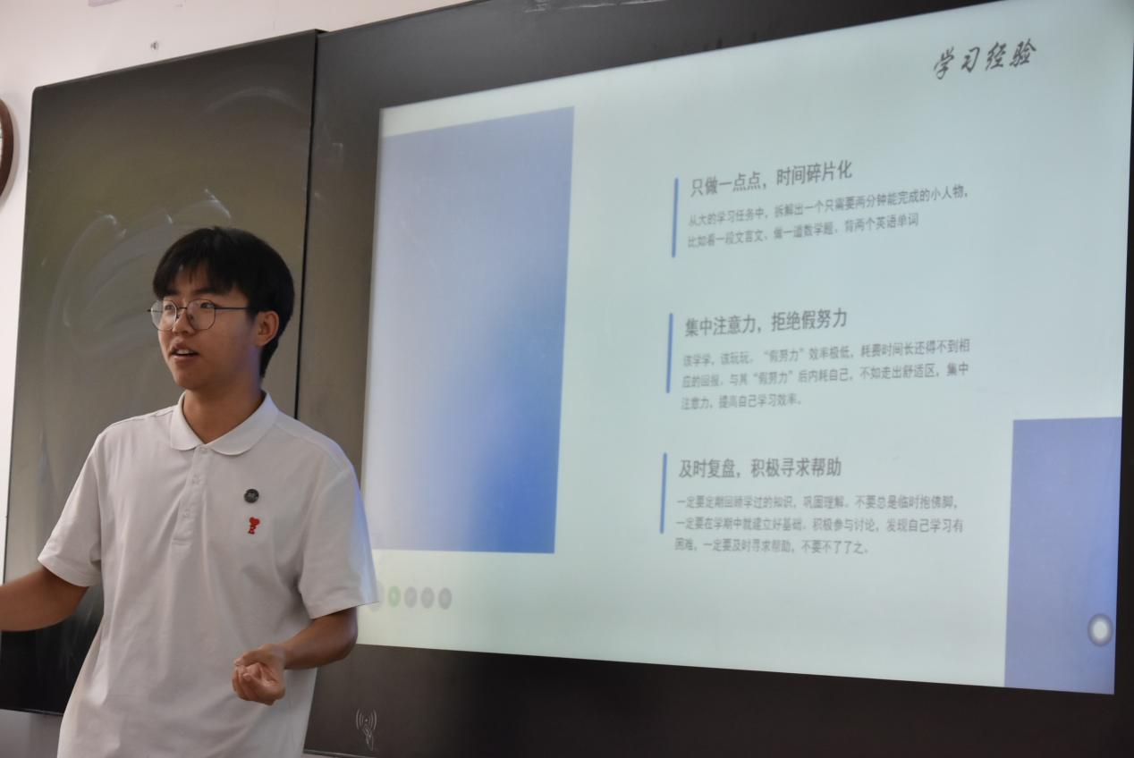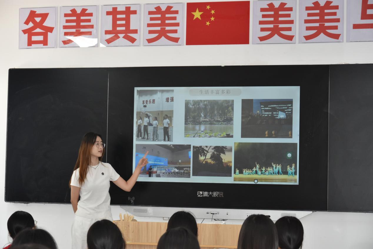 会议后,实践小队在庄彦利主任的带领下,分别前往各班进行宣讲。实践小队介绍了学校的各个学院和专业情况,同时设身处地为学弟学妹进行学习经验的传授,成绩提升的方法,对学习考试心态的管理,并介绍了自己丰富多彩的大学生活,同学们积极回应,效果良好。