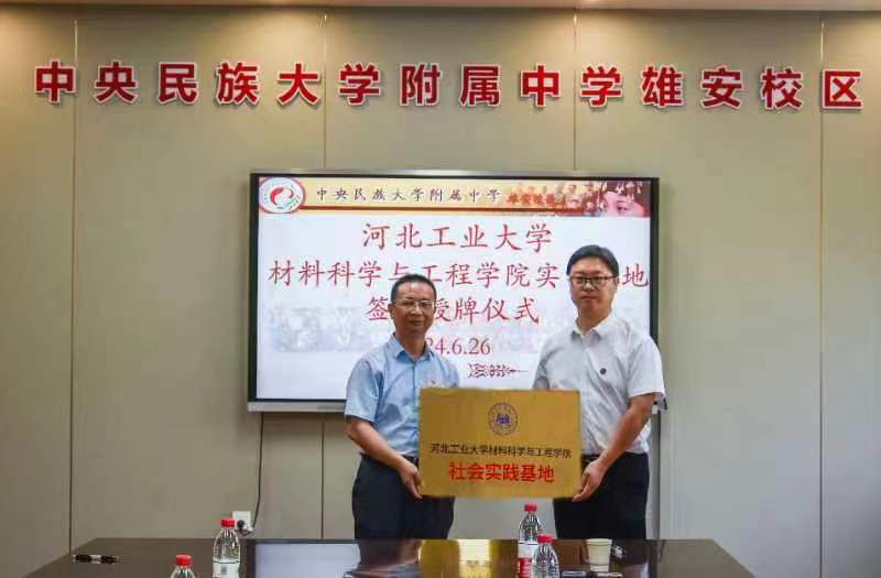 会议第五项,由王建昆代表kaiyun体育官网登录入口材料科学与工程学院与中央民族大学附属中学雄安校区(河北容城中学)签署《实践基地协议书》,并进行授牌仪式。