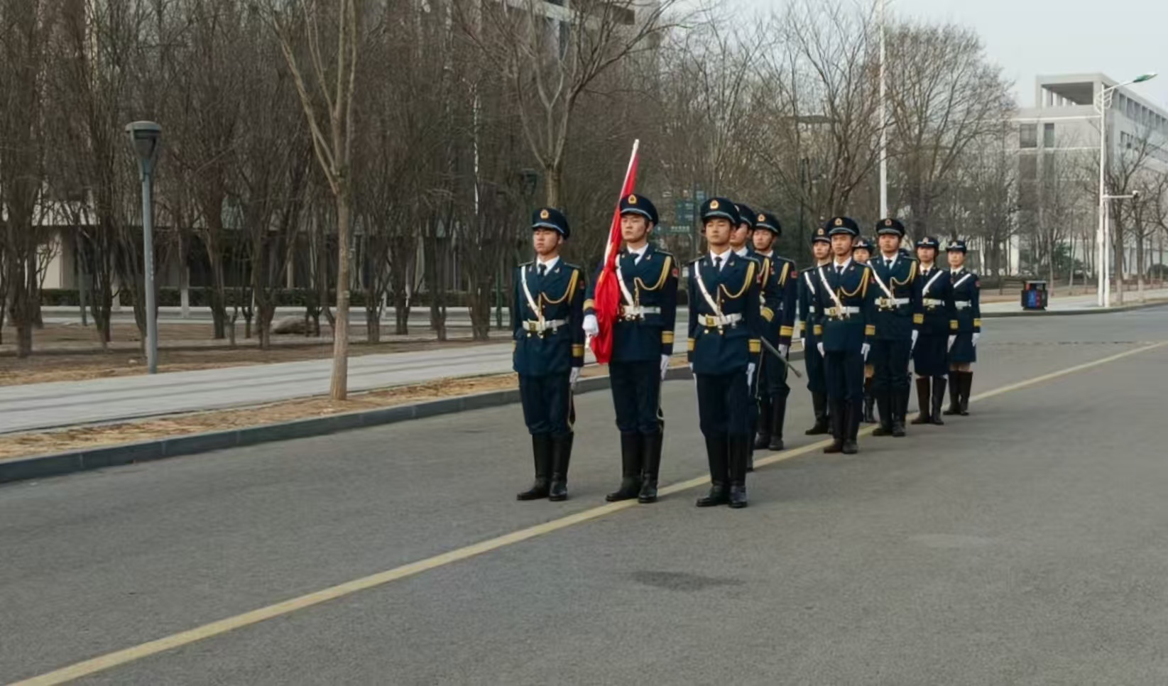 仪式伊始,护旗手迈着整齐有力的步伐出旗。在激昂的国歌声中,鲜艳的五星红旗缓缓升起,全体师生庄严肃立,行注目礼,同唱国歌,现场氛围庄重而热烈。