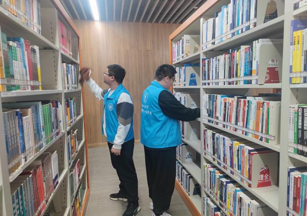 本月每周五,志愿者们准时前往图书馆开展整理清扫活动。志愿者们首先对书架上的书籍进行细致分类,按照类别、编号等信息将书籍归位,极大方便同学们查找。随后,大家清扫地面,擦拭桌椅,为同学们营造舒适的阅读环境。在整理过程中,志愿者们还积极向同学们宣传文明阅读理念,倡导爱护书籍,共同维护图书馆的良好秩序。