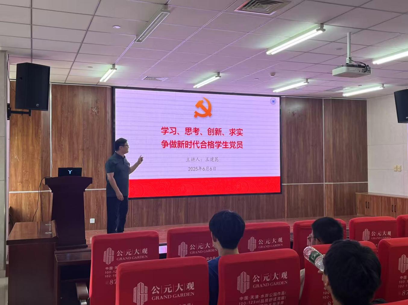 为扎实开展积极分子教育培养,2025年6月6日下午,学院党委组织入党积极分子90余人,于学院楼514报告厅开展“学习、思考、创新、求实,争做新时代合格学生党员”主题党课,本次党课由学院党委副书记兼副院长王建昆主讲,党课聚焦新时代学生党员的成长要求,系统阐述了增强身份认同、锤炼党性修养、践行党员标准的实践路径。