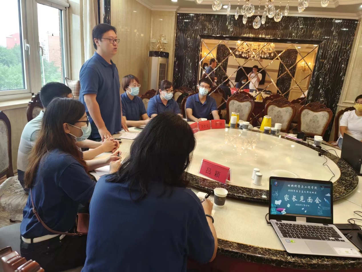 2022年7月13日上午9点kaiyun体育官网登录入口材料科学与工程学院赴河北省秦皇岛市举办了秦皇岛及周边家长见面交流会。材料学院党委副书记王建昆,团委书记许海媚,辅导员李昱、贺荟文、刘曌、吕颖,博士后周鹏飞老师和10余名秦皇岛及周边同学的家长一起参加了本次会议。本次见面会旨在促进家长与学院间的沟通与协作,帮助家长了解学生在校的日常学习生活,将材料学院打造成一个和谐、奋进的学院,让学生之间形成比学赶帮超的良好风气,为国家和社会培养有理想有担当的国家和民族的栋梁之才!