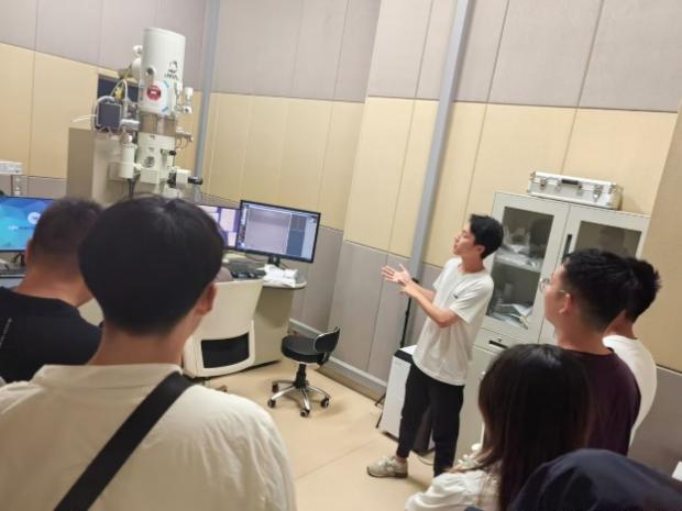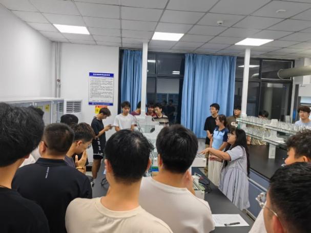 为了帮助即将进入材料专业学习的大二学生了解金属材料的内涵,解释同学们对专业学习的困惑,2024年8月28日晚,材料科学与工程学院金属材料工程系组织2023级本科生参观了先进材料测试与分析中心、教学实验中心、先进轻合金团队和层状材料与器件团队的部分实验室。参加此次活动的有材料学院副院长兼金属材料工程系副主任王新,金属材料工程系专任教师董艳春、苏虎虎、赵洪舰,先进轻合金团队的青年教师薛学娜、邓敏、王霖倩、徐新宇、韩露、荣建,2023级辅导员老师李云成,和金属材料工程专业2023级本科生五十余位同学。