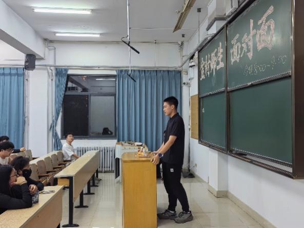 最后,金材系的师生们举行了师生面对面讨论交流活动,邀请了金材卓21班的李晨媛、韩可桢和柴雨盛同学,分别在金相大赛、专业学习、科研竞赛等方面介绍了取得的成绩和经验。学长们还以自己设身处地的成长故事和学习心得,交流了对金属材料专业的认识,强调了确立专业自信和全身心投入对个人成长的必要性。随后,董艳春、苏虎虎、赵洪舰等与会老师回答了同学们的各种问题,解答了同学们对专业学习的疑惑。