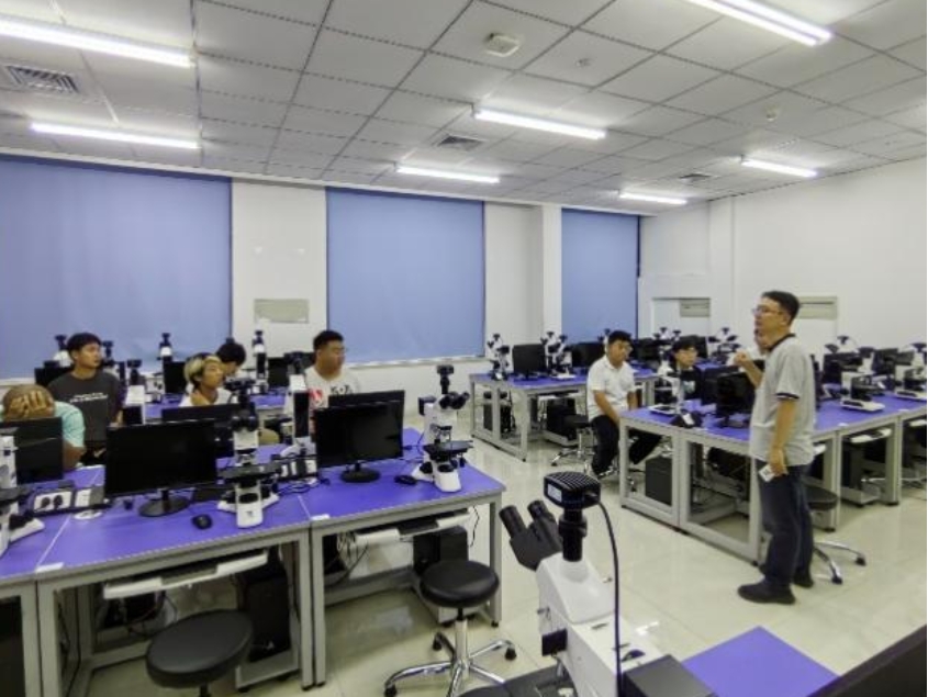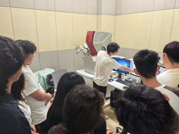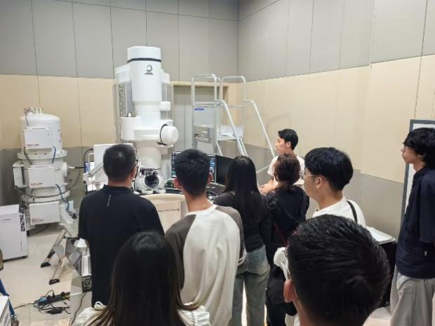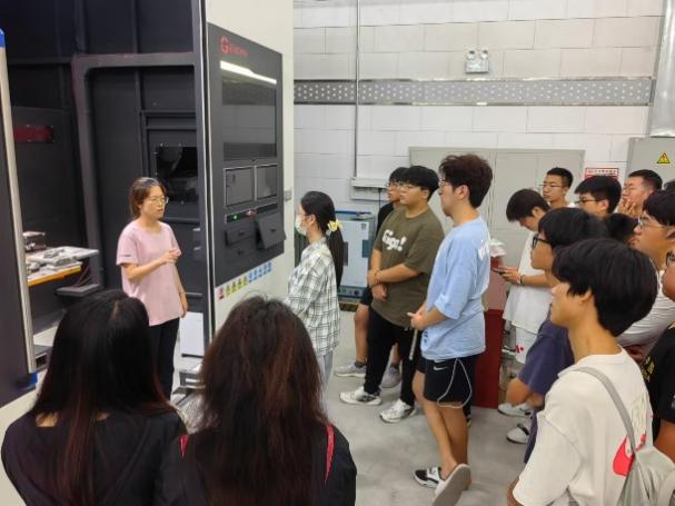 随后,同学们来到机材楼的先进材料测试与分析中心,在中心人员的带领下分组参观了球差校正透射电镜、高分辨透射电子显微镜、离子双束扫描电镜、Gleeble热模拟试验机、送粉式激光增材制造装置等先进仪器设备。通过老师们的讲解,同学们还了解了我校先进轻合金团队和层状材料与器件团队运用这些设备研究先进钛合金、镁合金、高熵合金等新型金属材料的研究成果,开拓了视野,对金属材料专业有了新的理解。其后,同学们还参观了教学实验中心的金相制样实验室、金相显微镜实验室和硬度实验室等在本科教学中常用的实验室,了解了材料科学与工程学院在金相实验教学和全国金相大赛中取得的成绩,掀起了对未来专业课学习的期待与热情。
