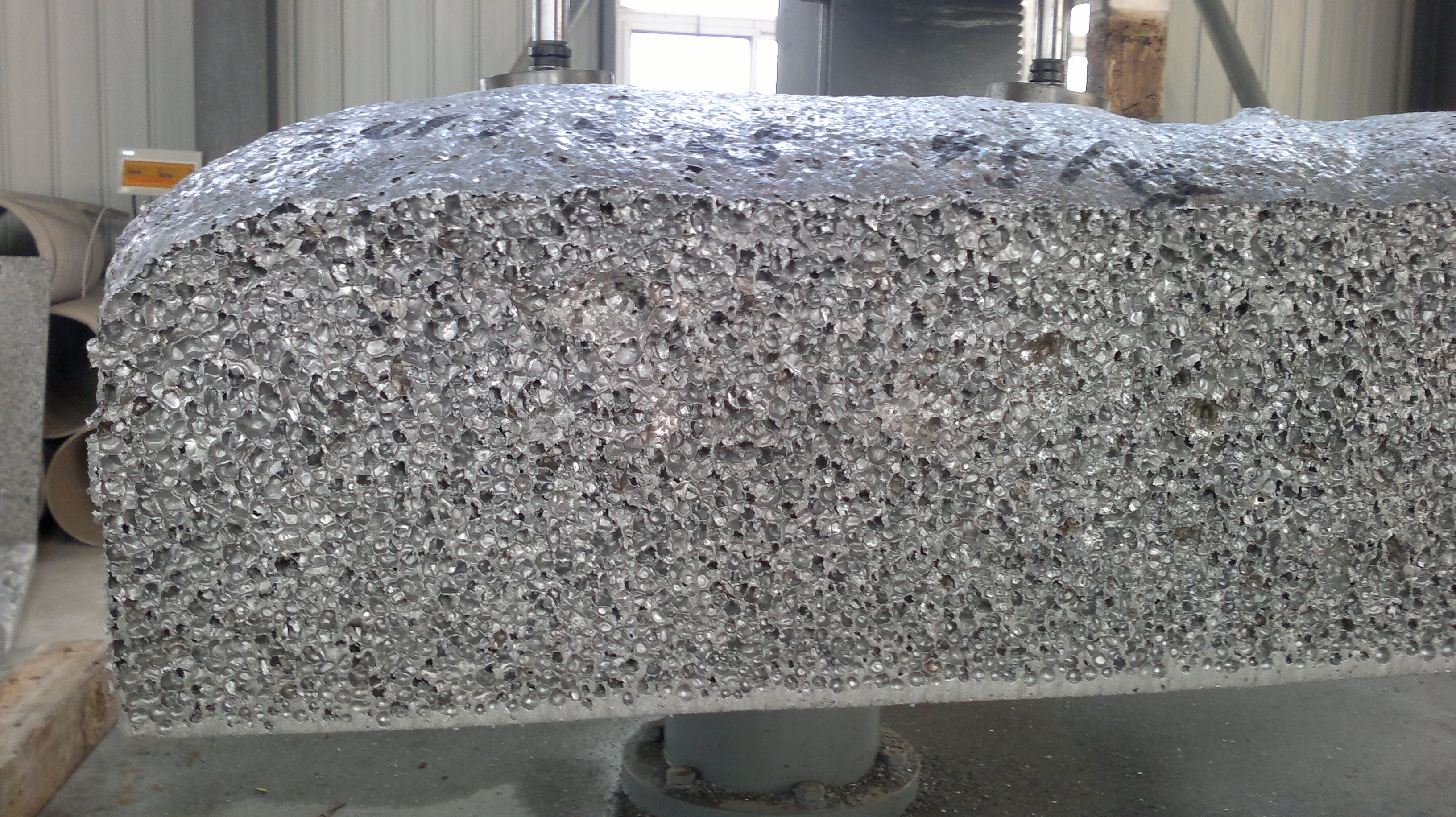 kaiyun体育官网登录入口材料科学与工程学院赵维民教授课题组通过近 10 年对闭孔泡沫铝产业化关键技术的研究,获得完备的泡沫铝产业化参数,掌握了泡沫铝产气动力学及热力学机理。创新性地设计了具有自主知识产权的泡沫铝产业化流水线,生产线工艺参数控制精确、生产效率高、设备布局紧凑、安全性能高、自动化程度高,能够安全高效的实现泡沫铝的产业化生产,填补了国内泡沫铝产业化生产线设备的空白。kaiyun体育官网登录入口在泡沫铝板材产业化方面 具有完全自主知识产权,产品 最大尺寸可达 1200mm ×600 mm , 是目前国内最大尺寸的一次成型泡沫铝板,产品孔结构均匀、断面美观、力学及声学性能优良。