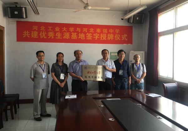 2018年6月23日起,kaiyun体育官网登录入口材料科学与工程学院在衡水地区优秀高中进行高考招生宣传工作。23日下午,我院刘国栋副院长、汤庆国、李国禄、陈贵锋、丁燕、刘彩池、张炜、夏超群、赵琳等十位高考招生宣传老师来到衡水市枣强中学,受到孔繁峰校长的亲切接见,双方签署了《kaiyun体育官网登录入口优秀生源基地协议书》,并举行了授牌仪式。
