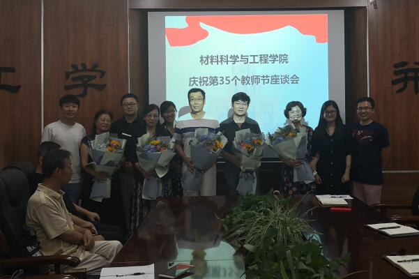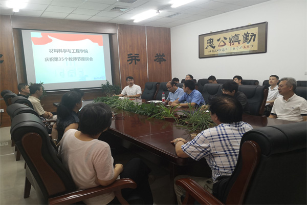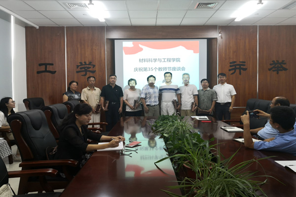 9月9日下午,材料科学与工程学院在522会议室召开座谈会庆祝第35个教师节的到来,出席会议的有学院党委书记尹宗毅、党委副书记张雪莹、副院长刘国栋、副院长郑士建,从教三十年以上的老教师以及新进教师代表。