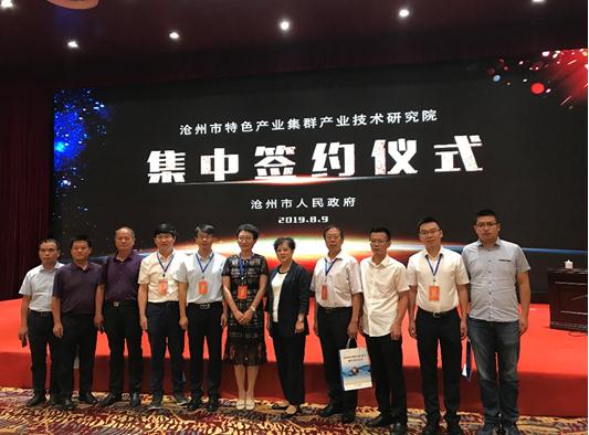 2019年8月9日上午,在沧州市金狮国际酒店,沧州市特色产业集群产业技术研究院集中签约仪式隆重举行。国家技术创新方法与实施工具工程技术研究中心主任檀润华、校工业技术研究院副院长丛继坤、材料学院党委书记尹宗毅、副院长郑士建、材料成型系主任李国禄、成型系教授刘金海、付彬国博士等一行出席了签约仪式。在河北省科技厅党组书记、厅长马宇骏、沧州市委书记杨慧、市长梅世彤、kaiyun体育官网登录入口原副校长檀润华等领导的见证下,郑士建教授代表材料学院与泊头市人民政府市长张荣霞签定共建协议。