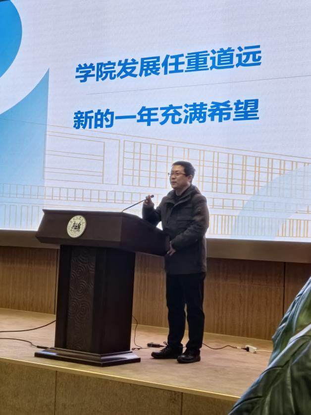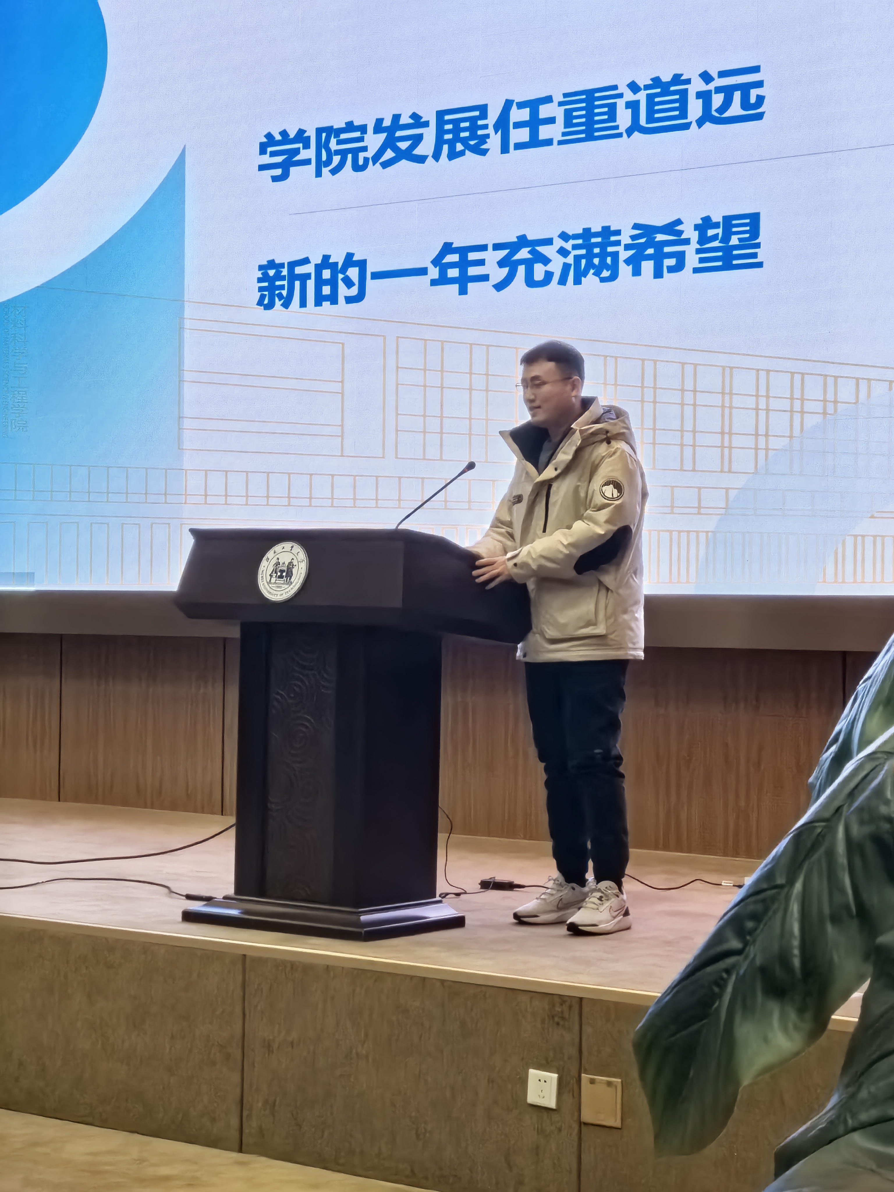 会议第二项议题,由杨勇对学院教学工作进行总结汇报,并对学院下一年的教学工作内容进行介绍,同时号召全体教职工在教学工作中多提宝贵意见,促进学院教学工作取得更大进步。