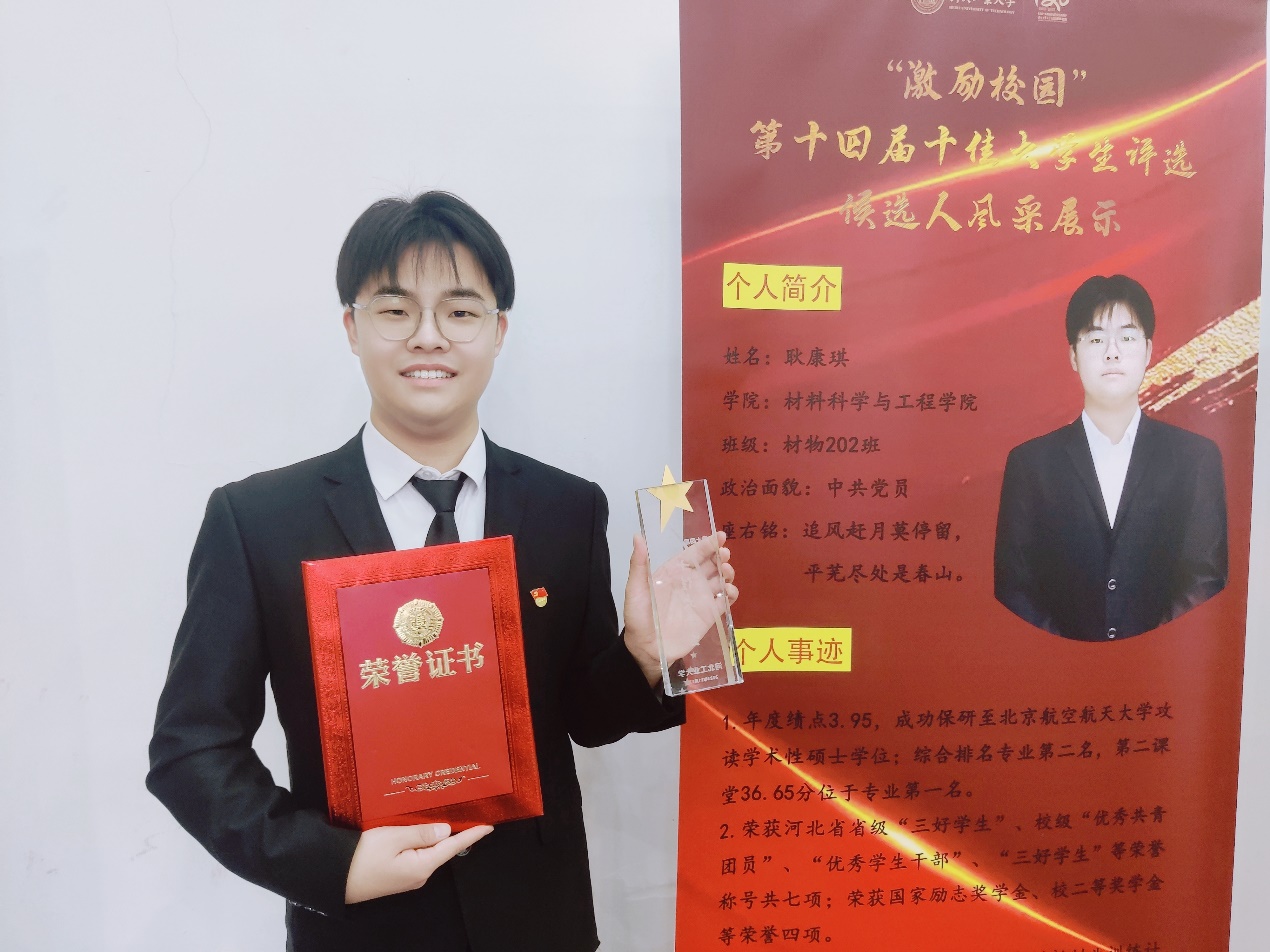 喜报!榜样学子丨材料科学与工程学院耿康琪荣获“激励校园”
