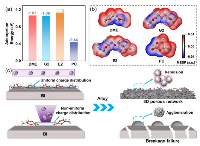 (3)界面电荷调控诱导微米铋颗粒演变成三维多孔网络以实现稳定储钾