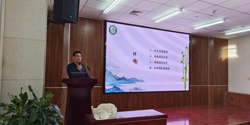 活动伊始由刘西贤为大家讲解颈椎病的防治。刘西贤指出预防颈椎病的方法主要是保持良好的姿势,避免长时间低头、仰头、侧头等不良姿势,适当进行颈部运动,保持颈部肌肉的柔软和力量。治疗颈椎病的方法包括药物治疗、物理治疗、手术治疗等,但是最好的方法还是预防。